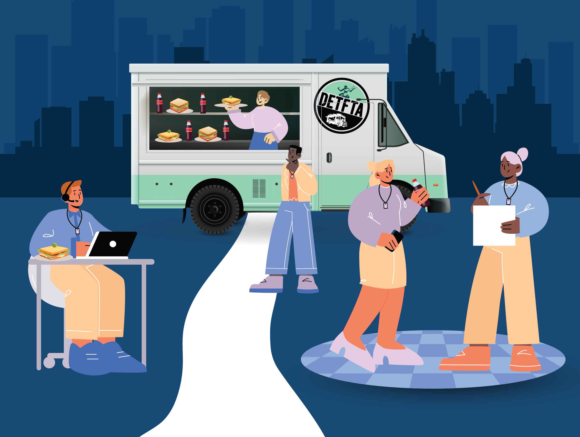 The Detroit York Food Truck Association curates one-of-a-kind, memorable food truck events and experiences. Whether you're looking to bring gourmet food truck catering to an event, rent a food truck, facilitate a marketing promotion, secure a mobile kitchen, or build a custom food truck, we provide a turn-key service for your mobile culinary needs. Check out our services and capabilities below.